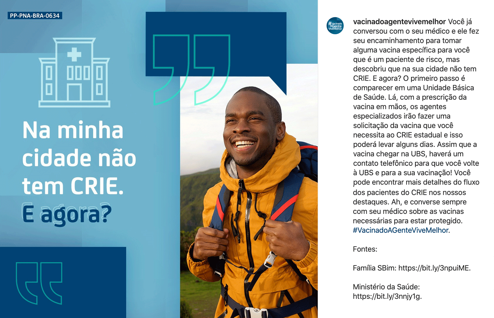 Criamos um perfil no Instagram para ser uma plataforma que agrega as informações essenciais (calendários, Centros de Referência de Imunobiológicos Especiais – CRIEs e seus endereços) e uma rede de influenciadores com condições clínicas trazendo depoimentos sobre o seus lifestyles e cuidados pra viver bem. A estratégia ainda conta com um filtro de stories especial para que as pessoas compartilhem que uma vez imunizadas e seguindo à risca as orientações do médico, é possível realizar atividades regulares e rotinas sociais como todas as outras pessoas.